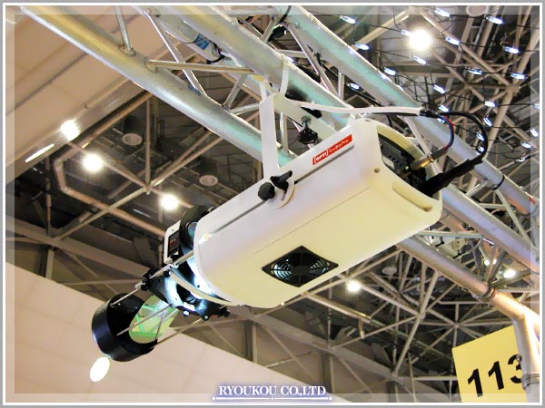 DMXプロジェクター。前部に装着したXYミラーの傾きをパソコンでコントロール。好きなタイミングで好きな位置に投影できます。